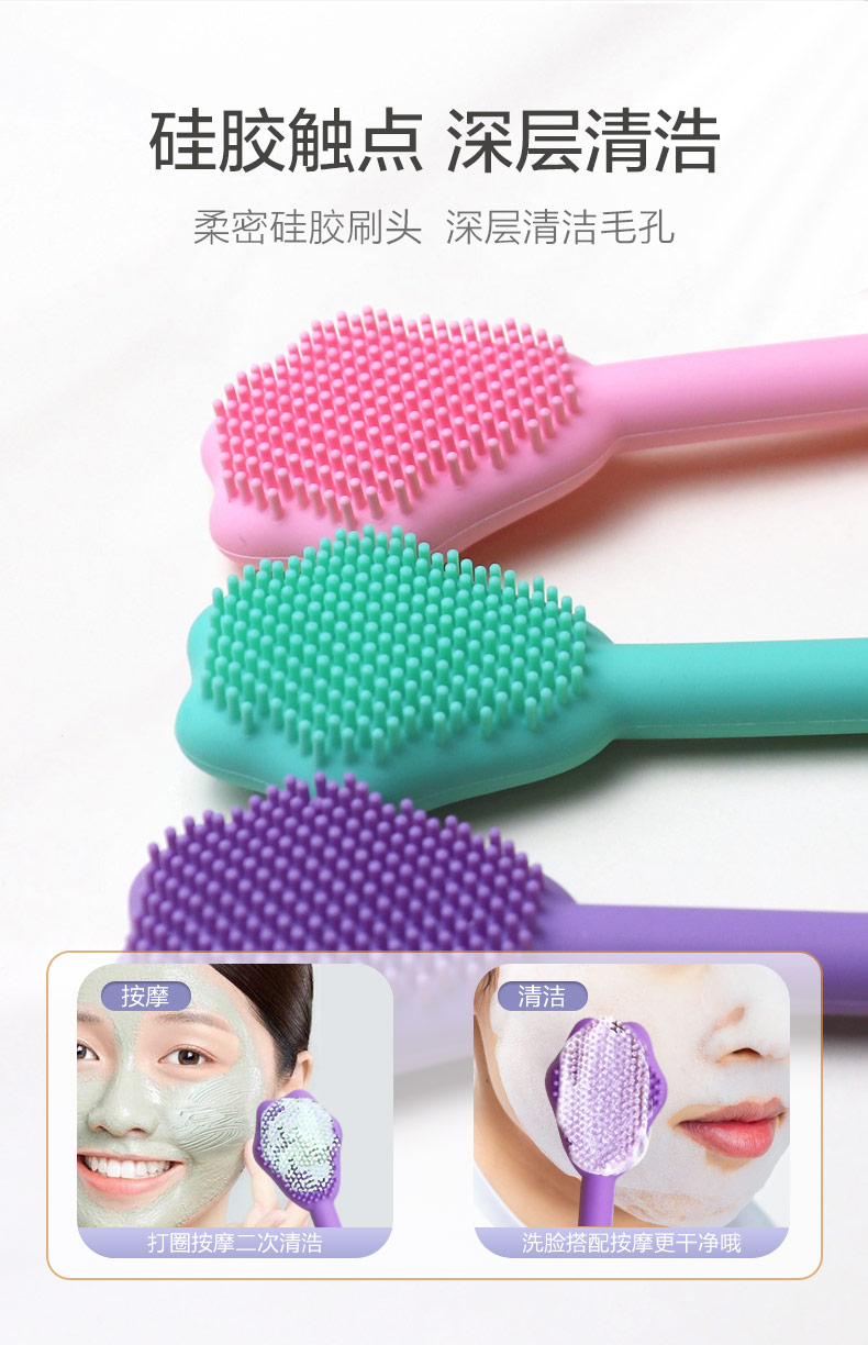 特點:柔軟硅膠,不滑不傷膚,護膚清潔二合一,無毒無害
