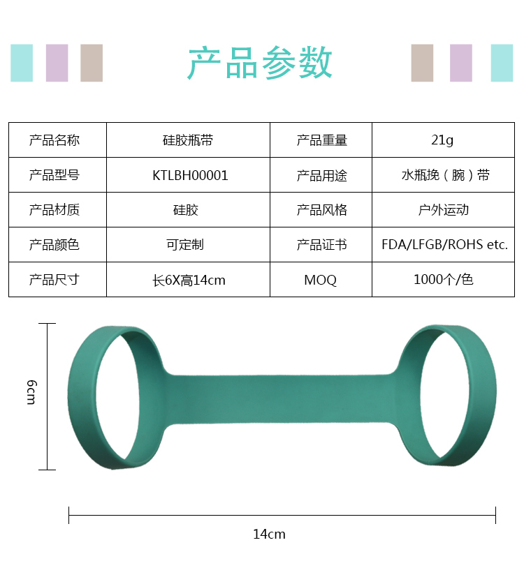 便攜式硅膠瓶帶,采用安全硅膠,無(wú)毒副作用。支持產(chǎn)品定制,可適用于各種水瓶。