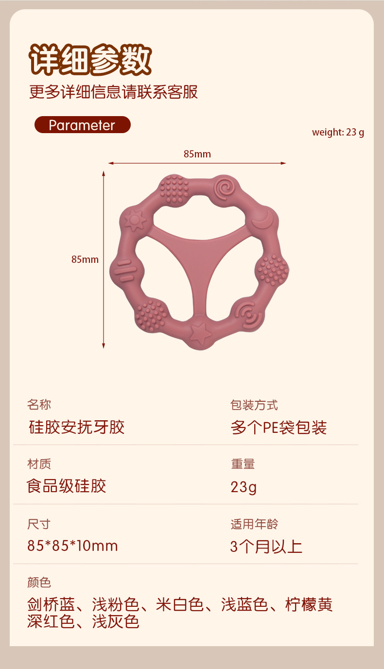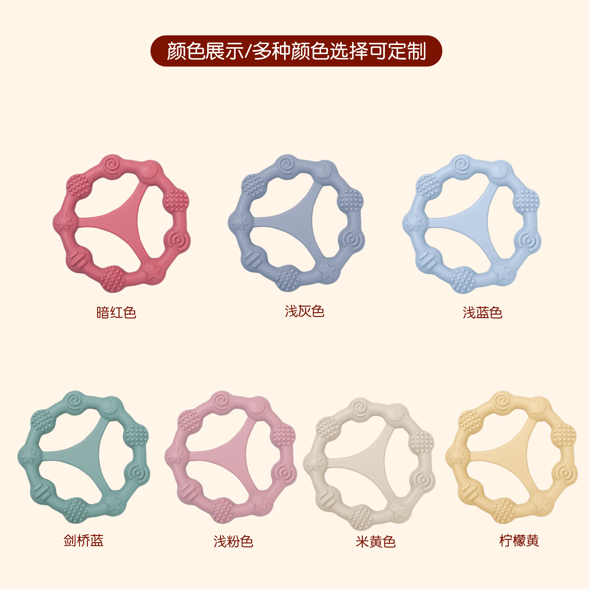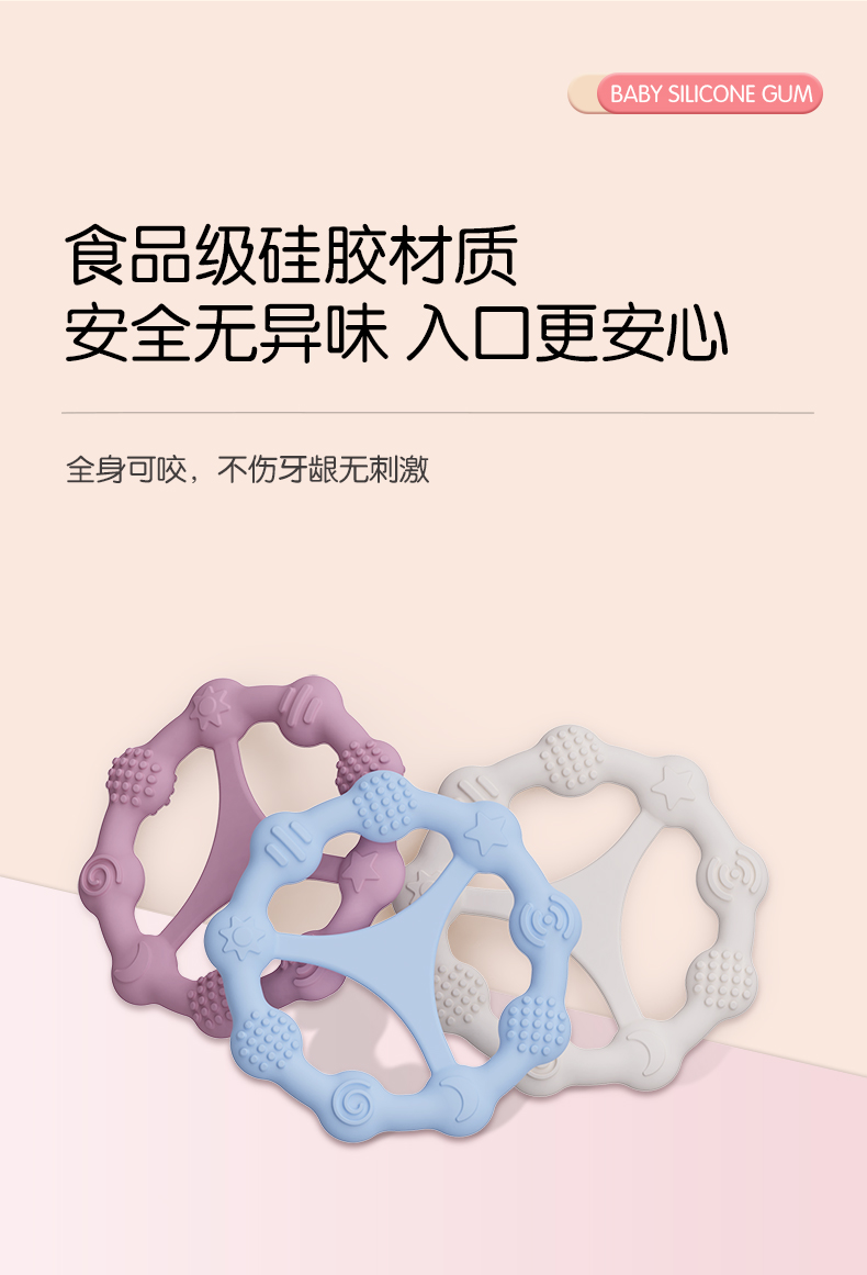 您的位置:首頁 > 產(chǎn)品中心 > 硅膠嬰童用品 > 牙膠 > 嬰兒硅膠牙膠防吃手食品級(jí)嬰兒玩具配件母嬰牙膠